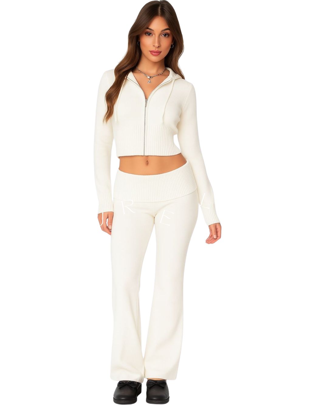 Este conjunto de dos piezas en tejido hilo algodón es ideal para quienes buscan comodidad con estilo. Incluye un hoodie con cierre y capucha, y un pantalón de tiro medio. Perfecto para días relajados, home office o salidas casuales. Combínalo con sneakers o botas para un look casual chic. Recomendado para quienes valoran el confort sin perder estilo.